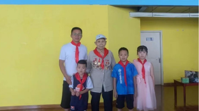 8月2日,頤信養(yǎng)老黨支部成員來到團(tuán)結(jié)西路社區(qū),與退伍老兵們重溫軍人入伍誓詞,并帶領(lǐng)社區(qū)兒童聆聽他們的故事。退伍老兵馮博用最質(zhì)樸的語(yǔ)言分享了曾經(jīng)軍旅生涯難忘事跡,促使新一代社會(huì)主義接班人感受艱苦卓絕的革命歷程,深刻領(lǐng)悟軍人們不屈不撓、艱苦奮斗的革命精神和高尚情操,為兒童們樹立人生榜樣,培養(yǎng)遠(yuǎn)大理想和堅(jiān)定信念。最后,孩子們?yōu)橥宋槔媳灰凰蜕狭思t領(lǐng)巾與誠(chéng)摯的祝福,爺爺們微顫卻標(biāo)準(zhǔn)的軍禮、溫暖而寬厚的笑容,令在的孩子們無不為之動(dòng)容,這也是老一輩和新一代之間的精神傳承。